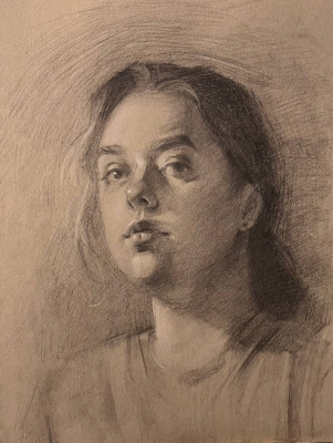 Carbon pencil, russian sauce on paper